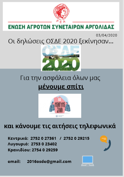 Για την υποβολή της αίτησής σας, ΟΣΔΕ 2020, μπορείτε να επικοινωνείτε καθημερινά στα τηλέφωνα: