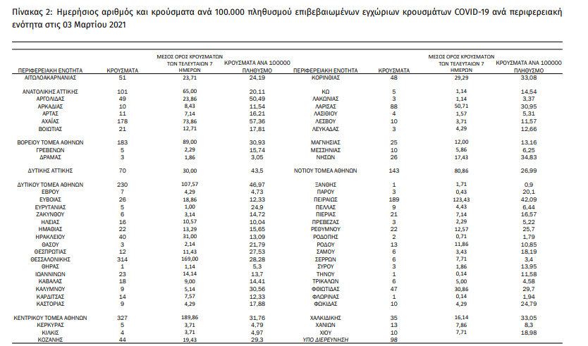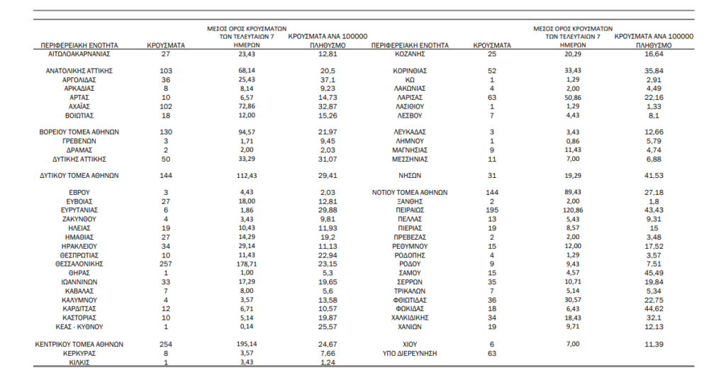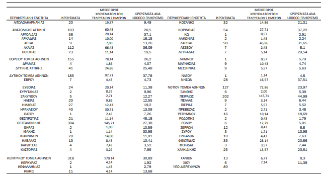 Η γεωγραφική κατανομή των 2.353 κρουσμάτων covid-19 που ανακοίνωσε σήμερα ο ΕΟΔΥ έχει ως εξής: