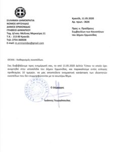 Στην σημερινή σας επιστολή, σχετικά με την δια περιφοράς συνεδρίαση του Δημοτικού Συμβουλίου του Δήμου Ερμιονίδας, κάνετε λόγο για τον απόλυτο σεβασμό που δείξαμε όλοι μας, για την διαφύλαξη της Δημοσίας Υγείας. Προκειμένου να ξεπεράσουμε την δύσκολη αυτή συγκυρία που βιώνουμε όλοι μας αυτό το διάστημα εφαρμόσαμε κάθε μέτρο που όρισε η Ελληνική Κυβέρνηση και κάναμε και συνεχίζουμε να κάνουμε ότι ορίζει ο νόμος για το καλό όλων. Έτσι λοιπόν για τις συνεδριάσεις του Δημοτικού Συμβουλίου εφαρμόσαμε την δια περιφοράς συνεδρίαση του ανώτατου θεσμικού οργάνου, μιας και δεν είναι δυνατόν να υποστηρίξει το ηλεκτρονικό σύστημα που διαθέτει ο Δήμος τις συνεδριάσεις μέσω τηλεδιάσκεψης.