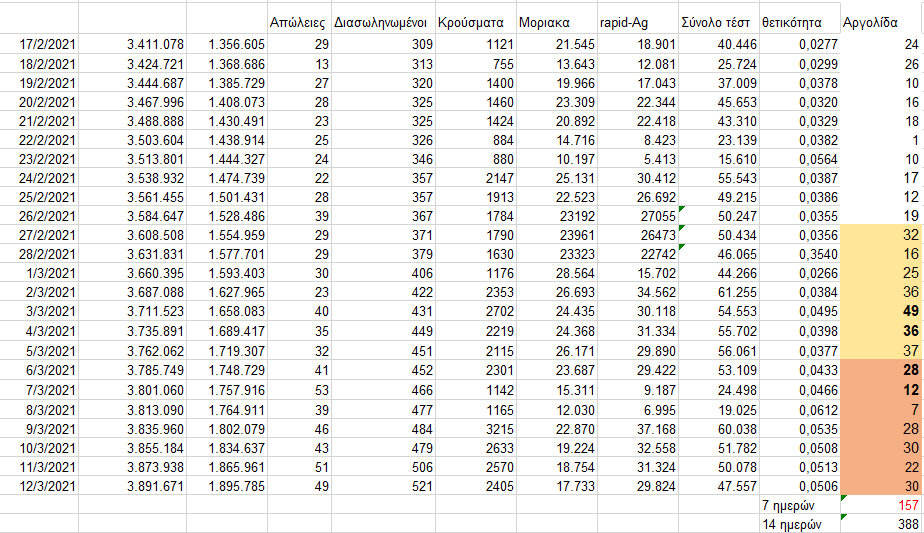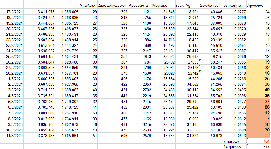 Χθες Τετάρτη 10/3/2021, ολοκληρώθηκε η λήψη δειγμάτων από τις κινητές ομάδες Υγείας (Κ.ΟΜ.Υ.) Αργολίδας του ΕΟΔΥ, για την διάγνωση covid-19.