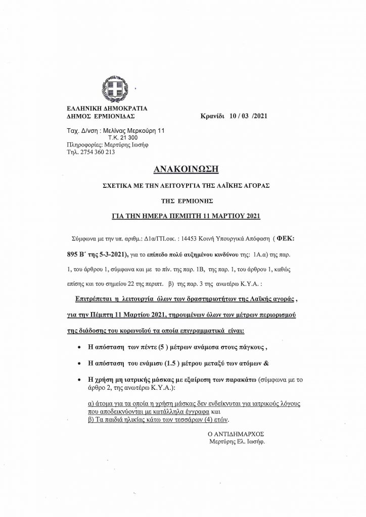 Ως Πρόεδρος της Κοινότητας Ερμιόνης, μετά το Δελτίο Τύπου του Δήμου Ερμιονίδας στις 4ης Mαρτίου 2021 με την δήλωση του Δημάρχου Ερμιονίδας κου Γεωργόπουλου (περί σχολιασμού της τοπικής επικαιρότητας) διαμηνύω τα κάτωθι: