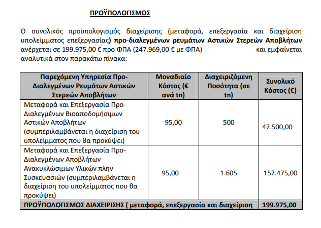 Κάτι για το οποίο φωνάζαμε από την αρχή, κάνοντας λόγο για μη προστασία των συμφερόντων του Δήμου Ερμιονίδας, αφού τα σκουπίδια στις 3 προηγούμενες συμβάσεις μέσα στο 2020 στοίχισαν 110,00€/ tn. Σε αυτές τις 3 συμβάσεις δόθηκαν προς διαχείριση 5.454 tn σκουπιδιών (1818 tn X 3).
