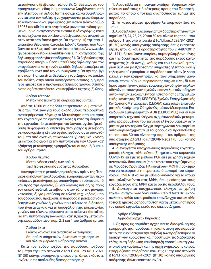 Τι ακριβώς ισχύει απο σημερα το πρωί στην Αργολίδα με τα νέα περιοριστικά μέτρα.(ΦΕΚ)