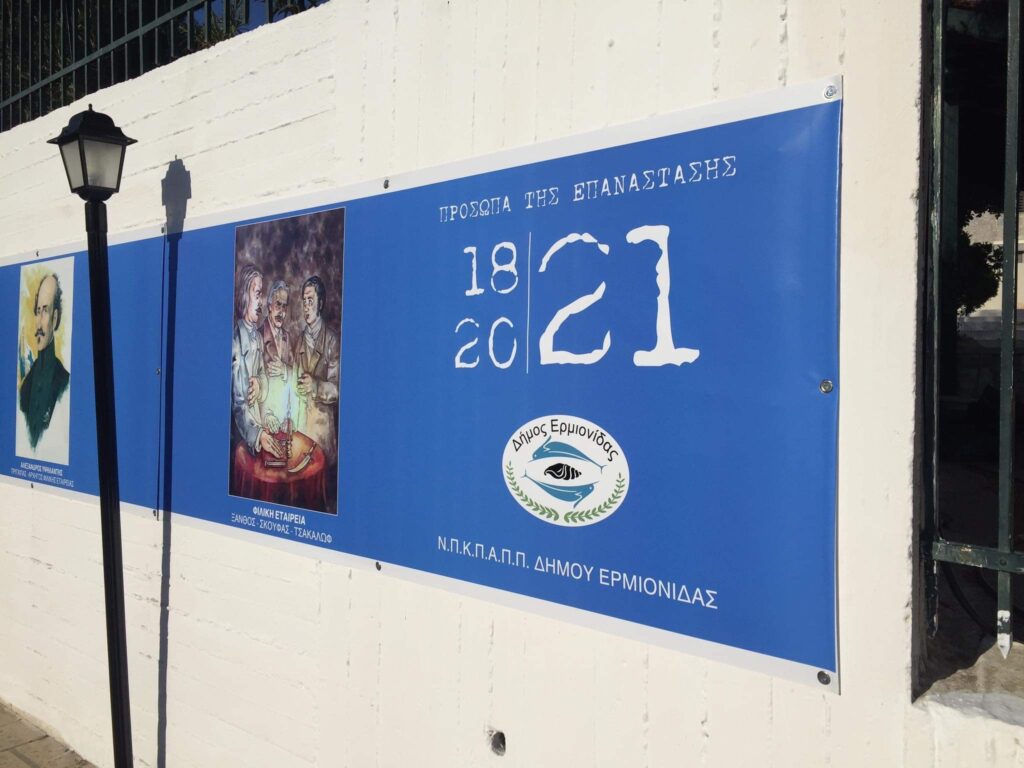 Αντιλαμβανόμενοι το χρέος που έχουμε, «βάλαμε» τους ήρωες της Ελληνικής Επανάστασης στην καθημερινότητά μας. Στην πρωτεύουσα του Δήμου, στο Κρανίδι, τοποθετήσαμε ένα πανό μήκους 75 μέτρων με 16 πρόσωπα της Επανάστασης που μας θυμίζει εκ νέου τις ένδοξες στιγμές του αγώνα από τον οποίο αναδείχθηκαν οι ήρωες μας. Στην Ερμιόνη, στο Πορτοχέλι, στα Δίδυμα, στην Κοιλάδα, στο Ηλιόκαστρο, στην Θερμησία, στους Φούρνους, στο Λουκαΐτι και το Ράδο τοποθετήθηκαν κάδρα με τους αγωνιστές για να θυμίζουν σε κάθε πολίτη ότι η ΕΛΕΥΘΕΡΙΑ θέλει «ΑΡΕΤΗ και ΤΟΛΜΗ».